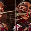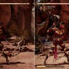 Cutscenes are also problematic on Switch. Motion capture on PS5, Series X, S and PC is expertly delivered by Netherrealm Studios as always. Sadly though, facial capture details do not translate well to Nintendo’s handheld -and has been the source of many memes since its release. Full body motion capture is intact, but the most glaring issues relate to missing character mouth and eye animations. They’re static at points, creating uncanny moments during in-engine intros. Worse still, there are numerous visual bugs during intros, an fatalities, that spoil the experience too – including collision issues on characters as their teeth don’t sync with the movement of their mouths. Likewise, even the story mode has clear issues, with flickering shadows across characters, right from the first bout of fights. Plus, there are stretches of tearing and hitching during the pre-rendered scenes on Switch, which is likely a CPU contention issue as Switch loads the next stage behind the scenes.