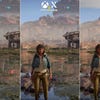 Switching to performance testing, the default 30fps quality mode is easy to summarise: both PS5 and Series X run near flawlessly in most cases. The opening cutscene exhibits distinct hitches between each camera cut, but later in-engine scenes are less heavily affected. I also spotted a handful of dropped frames in battle, notably after triggering explosives, or in moving quickly through cities. Otherwise, the 30fps lock is absolutely on point for both consoles in regular play and I’d be tempted to recommend it just for the higher image quality it provides. The only difference between platforms is that Series X uses adaptive v-sync, allowing for an occasional torn frame at the top of the display, while PS5 is fully v-synced throughout. Really though, in speeding through open terrain, or moving through complex, NPC-packed areas, there’s rarely an issue in holding at 30fps, and that tearing on Xbox is largely invisible.